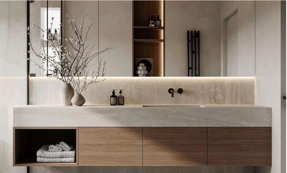 Sampo, sabun, dan handuk sering berakhir di lantai karena nggak ada tempat penyimpanan. Coba dengan menambahkan niche atau rak tanam di dinding. Simpel, tapi bikin kamar mandi kelihatan rapi dan lega.