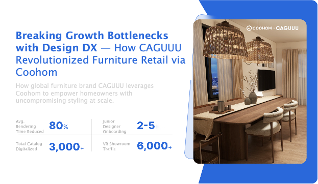 With hubs in Tokyo, Shenzhen, and Shanghai, CAGUUU is on a mission to empower homeowners through its vision: “Uncompromising home styling for a personalized lifestyle.” However, rapid scaling brought a formidable challenge: “How to showcase a massive catalog of 3,000+ SKUs to customers in a way that is realistic, engaging, and operationally efficient?” The answer was found in Coohom.